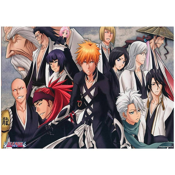 Bleach Framed Manga Anime Tv Show Poster Characters Ichigo Kurosaki Rukia Uryu Renji Metallic Blue Plastic Frame Walmart Com